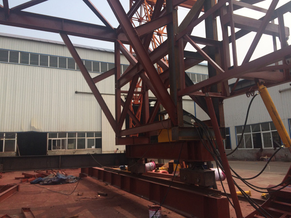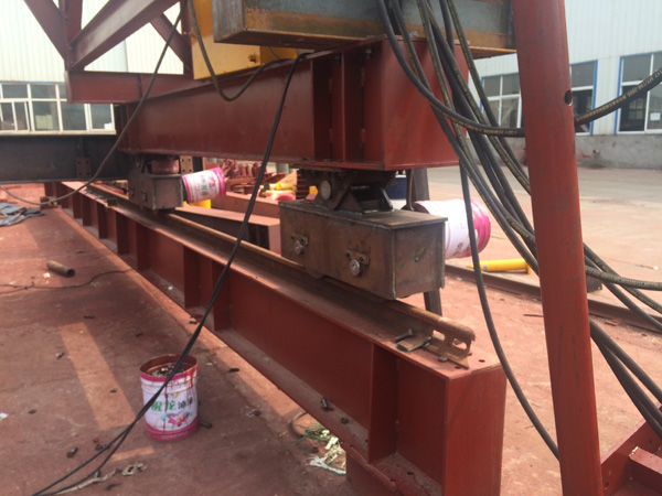 結(jié)構(gòu)∶液壓驅(qū)動(dòng)自行式移動(dòng)棧橋,主要由前橋、主橋、后橋、前段支架、后段支架、行走驅(qū)動(dòng)裝置、行走支架七個(gè)部分組成。